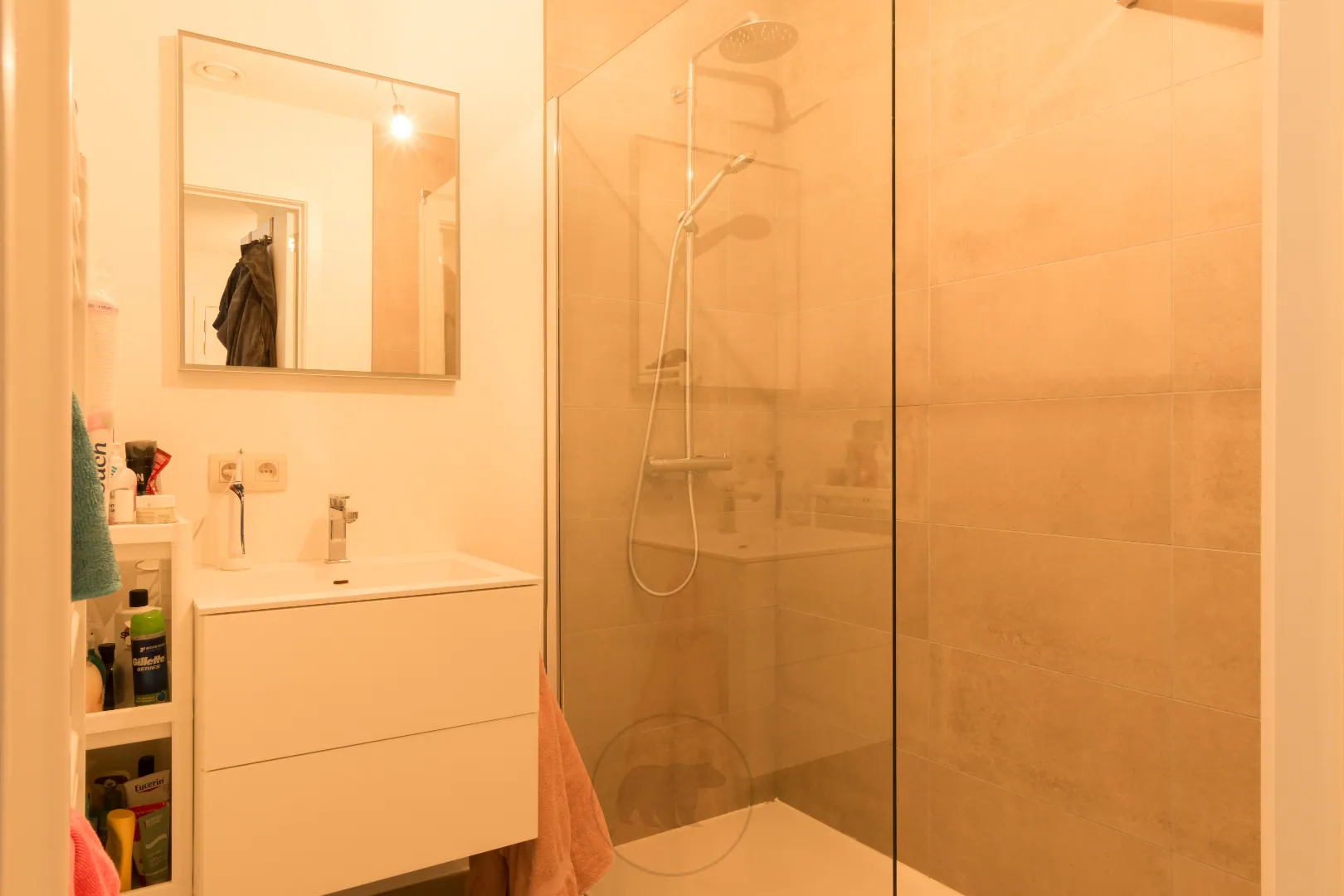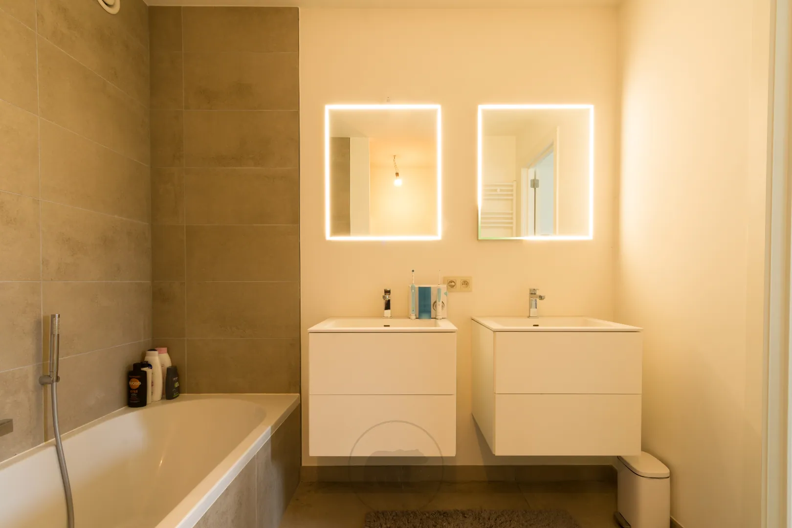 Het appartement telt 3 slaapkamers. Voorin het appartement liggen twee slaapkamers met toegang tot de voortuin. Aansluitend is er een badkamer met enkele lavabo en inloopdouche. Achterin is er een ruime derde slaapkamer met annex badkamer. Deze badkamer heeft een dubbele lavabo, ligbad, inloopdouche en nachttoilet. Tenslotte is er ook een berging en een afzonderlijk gastentoilet.