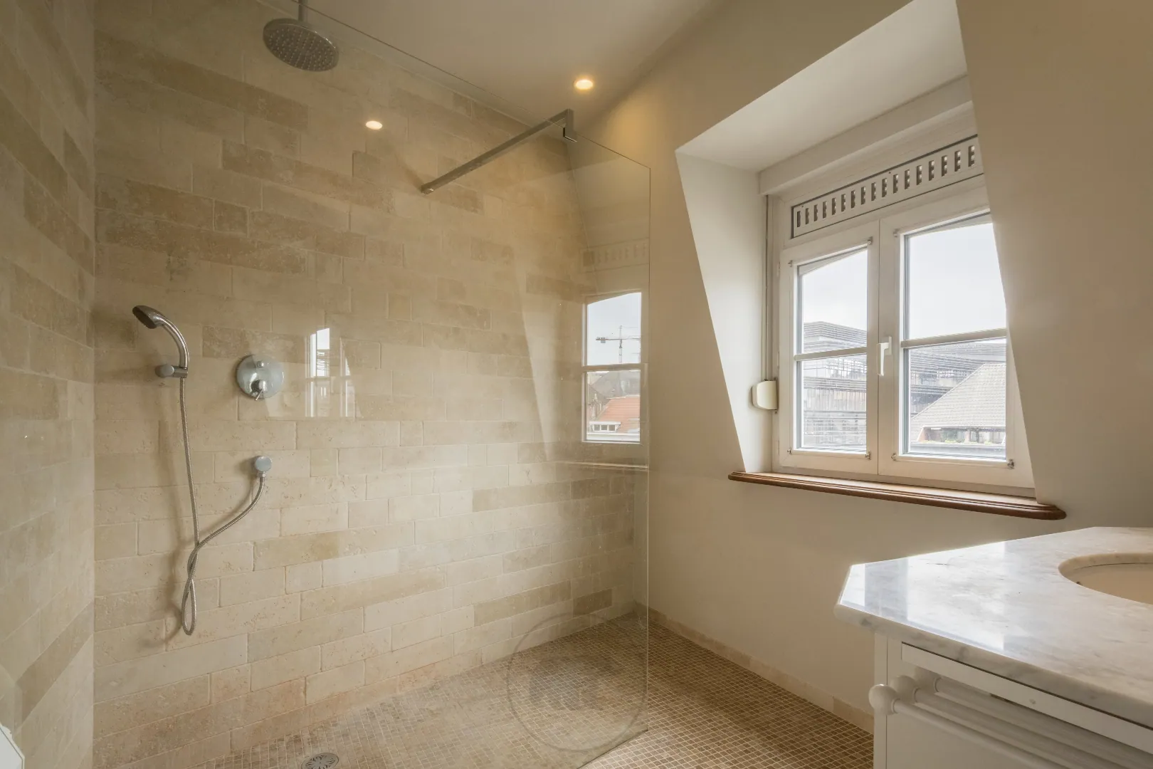 Tenslotte zijn er nog een gastentoilet, badkamer met inloopdouche en een slaapkamer met inbouwkasten.