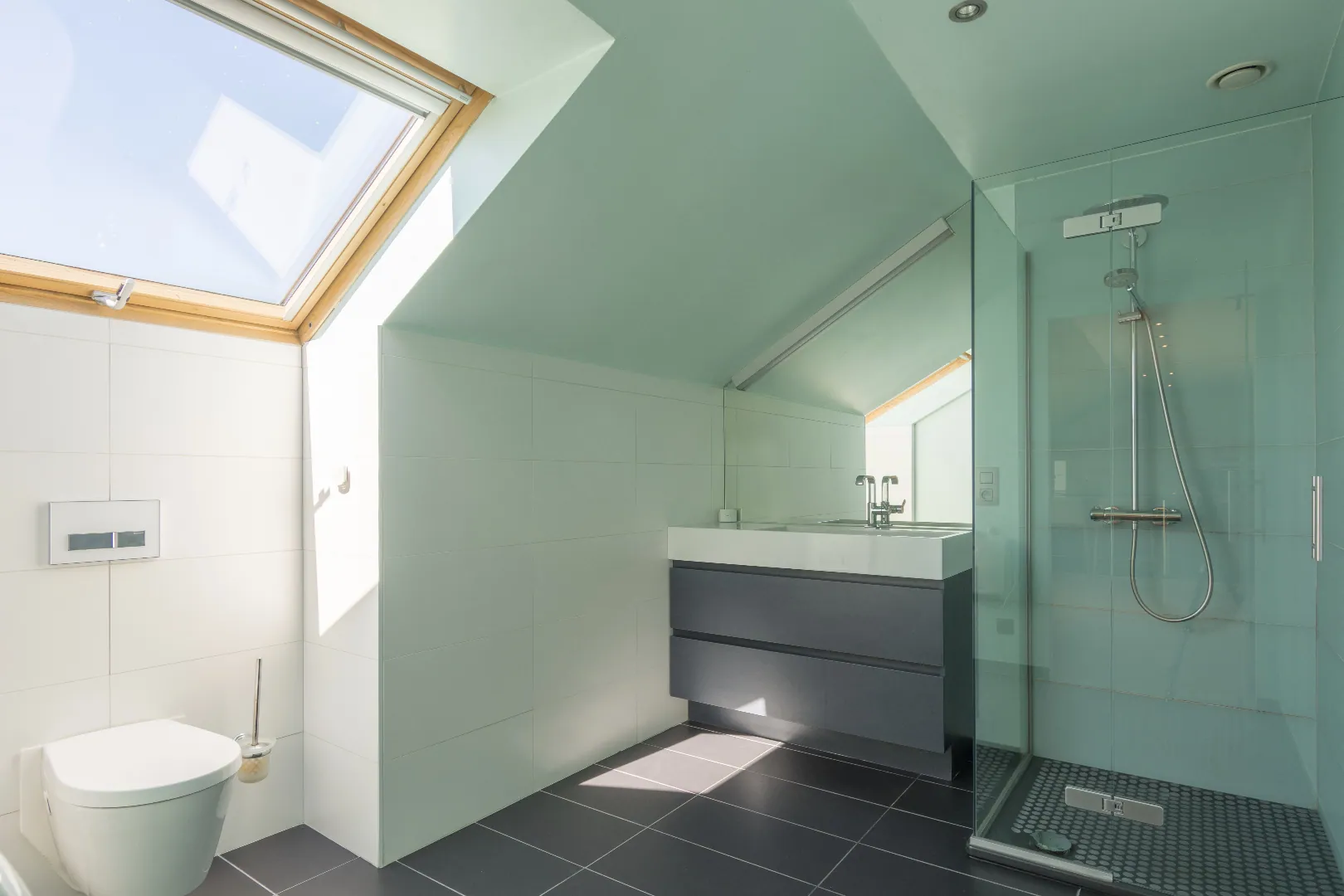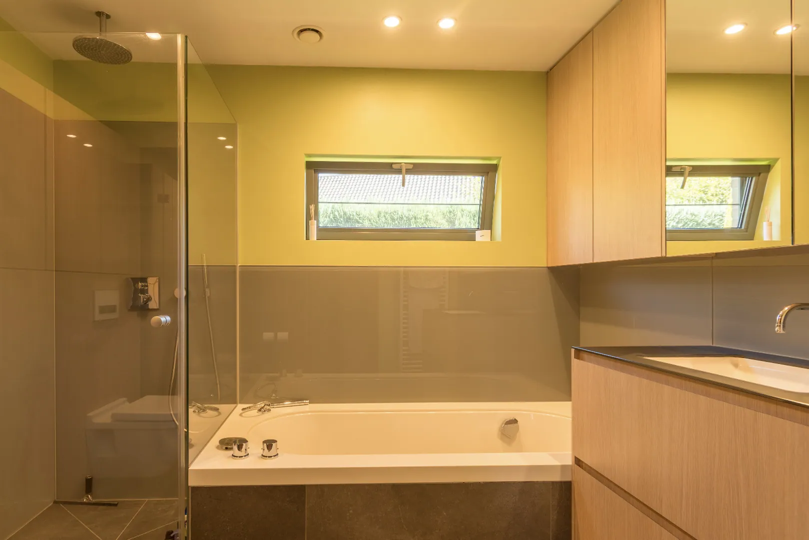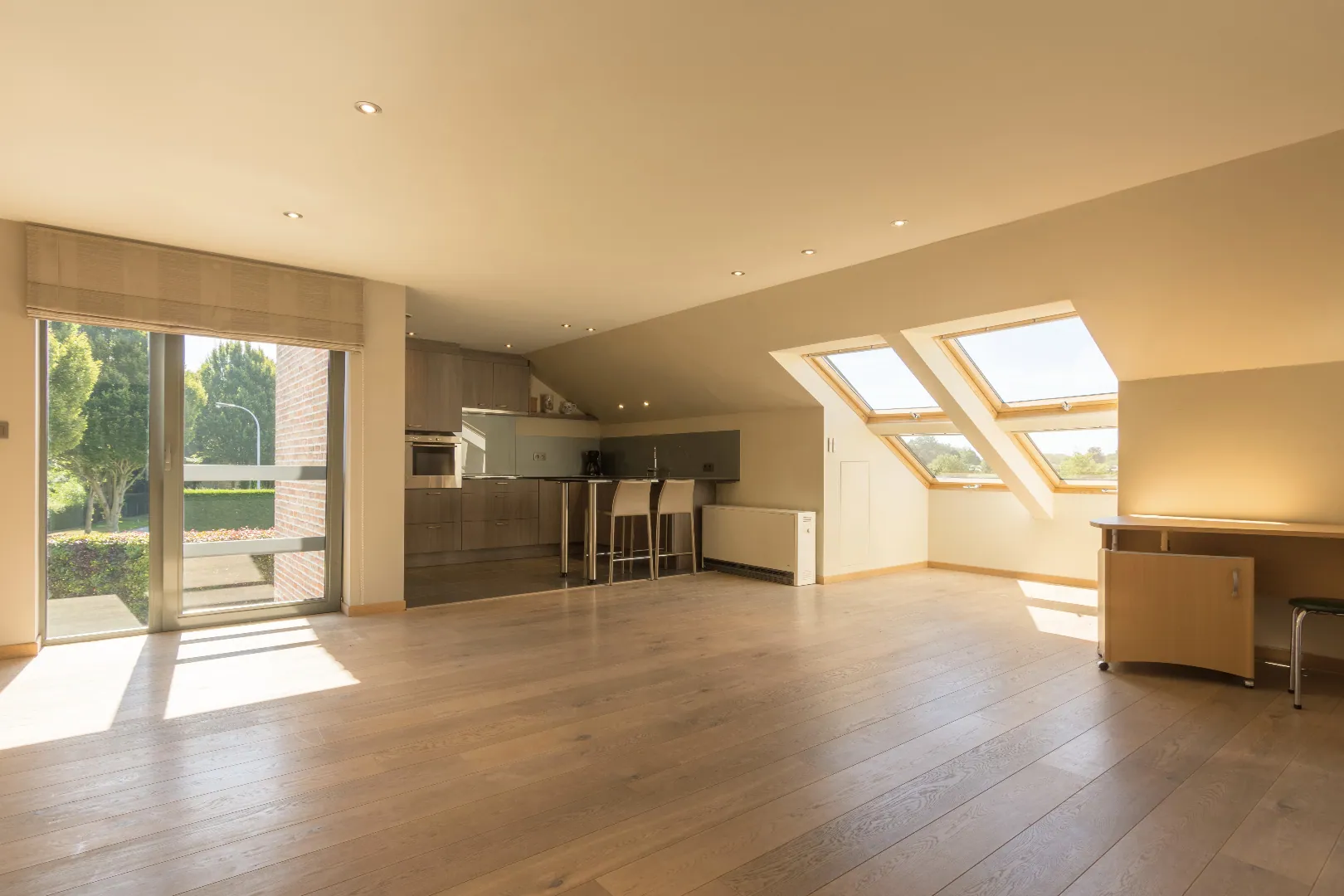 De bovenverdieping is ingericht als een afzonderlijke appartement met keuken, living en 2 slaapkamers met elk een badkamer. Ideaal als kangoeroewoning maar zonder afzonderlijke voordeur.
