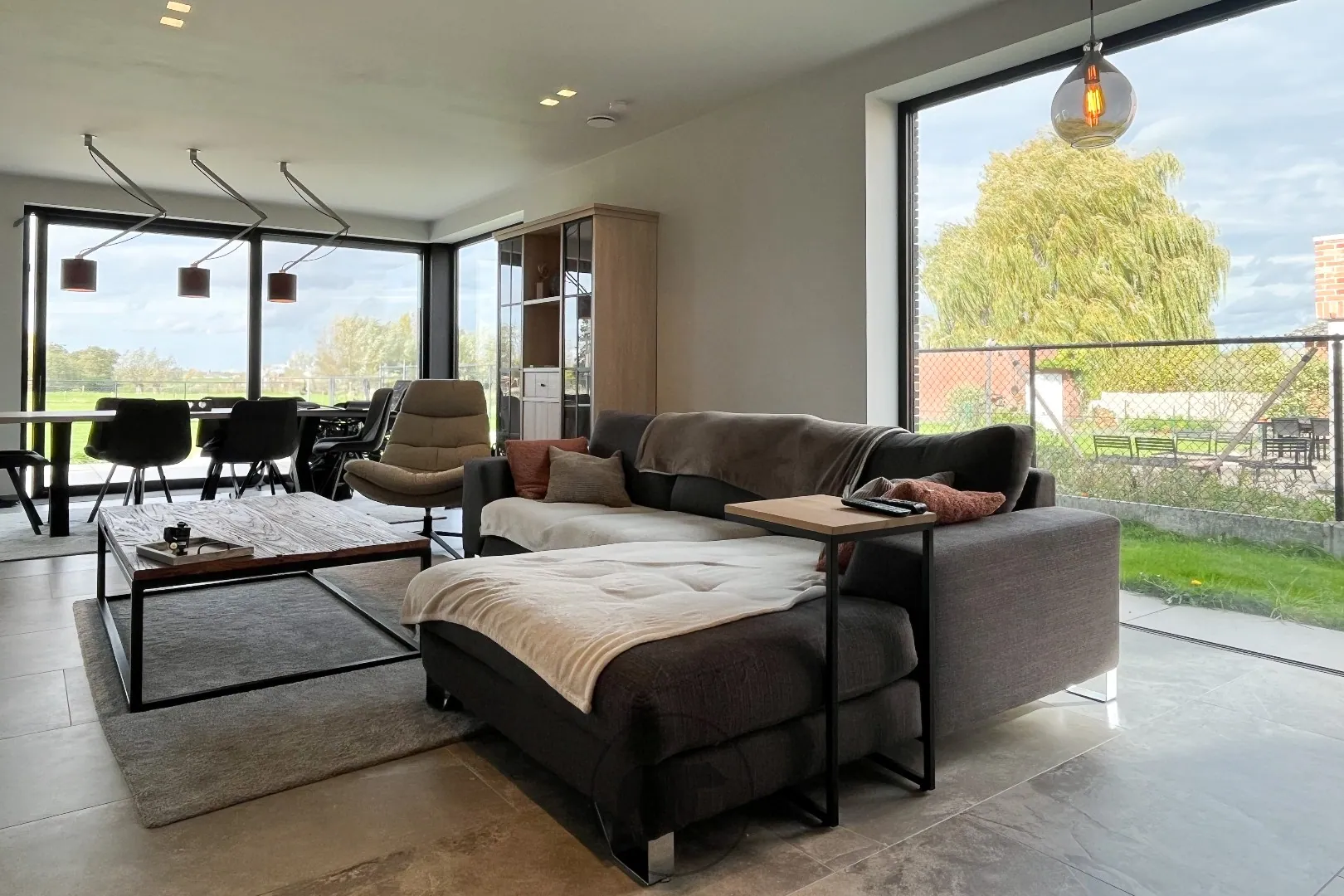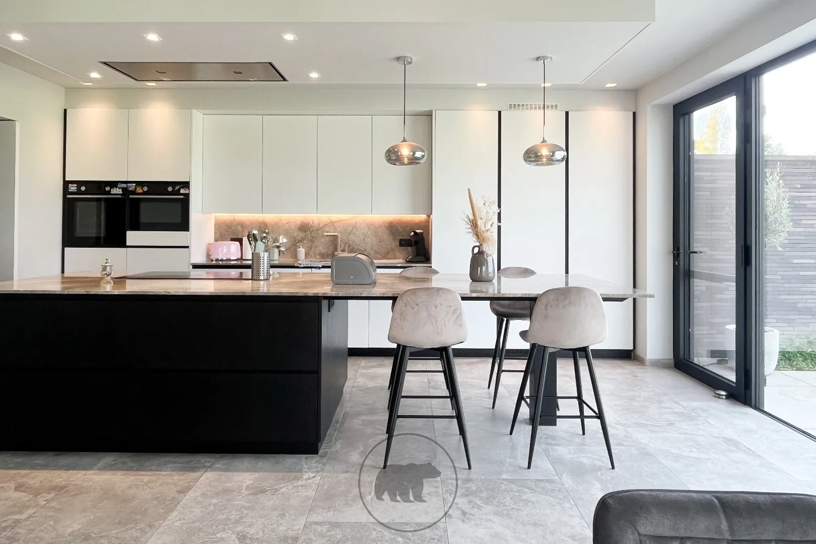 Zowel keuken als living hebben toegang tot het terras en de eindeloze verzichten.