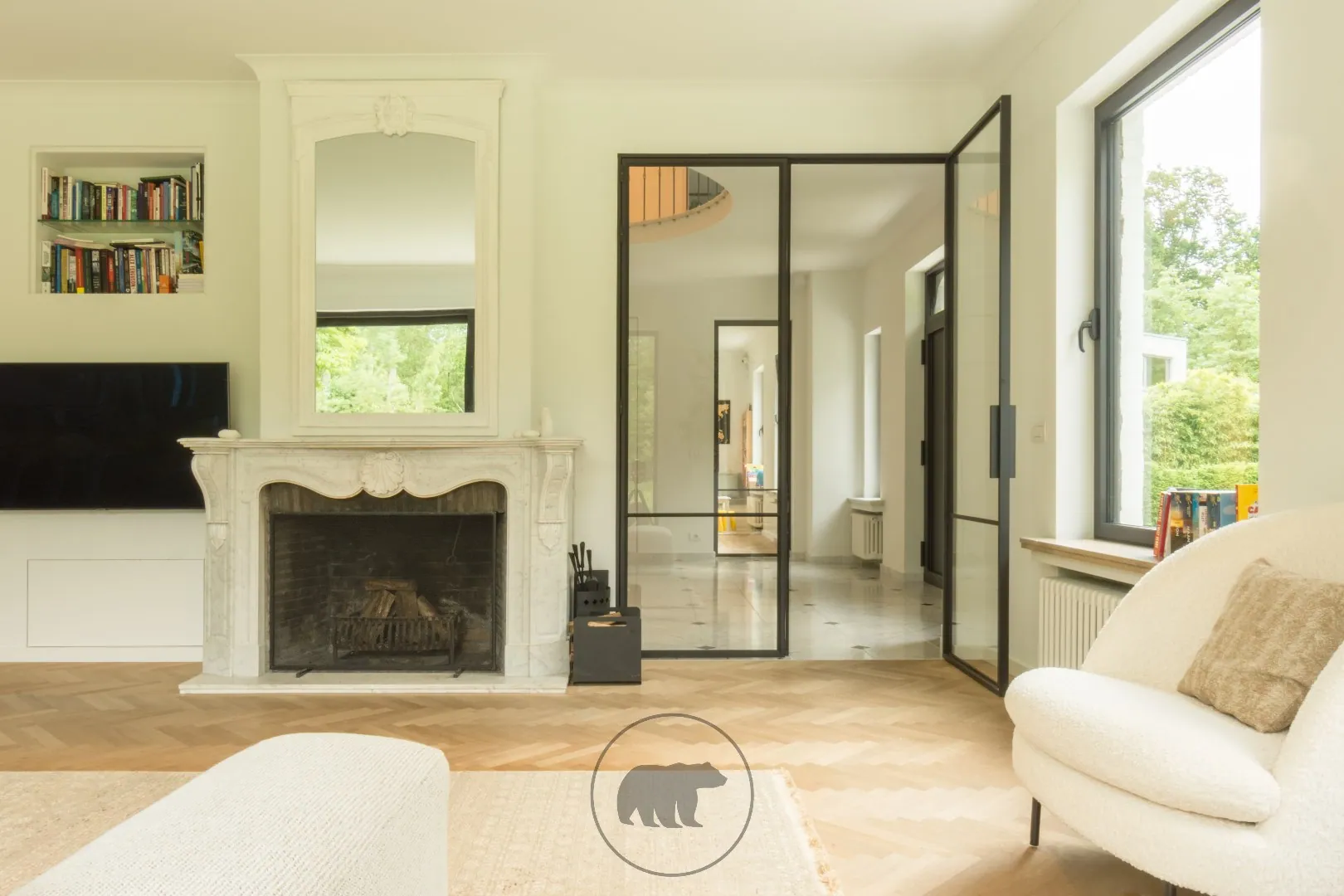 Een discrete toegang aan het begin van een verkeersluwe wandel- en fietswegel geeft toegang tot het terrein van 5.500 vierkante meter. Binnenin deze prestigieuze villa in Franse stijl lopen ruime leefvertrekken gracieus in elkaar over. Kwalitatieve, duurzame en tijdloze materiaalkeuzes zoals marmer, visgraatparket en deuren in smeedijzer geven de villa de grandeur die u van deze bijzondere eigendom mag verwachten. De grote raampartijen brengen doorheen de vier seizoenen de zuidgerichte tuin en haar omgeving overal naar binnen. Het mansardedak zorgt ook op de bovenverdieping voor een bijzonder efficiënt en ruim woonvolume.