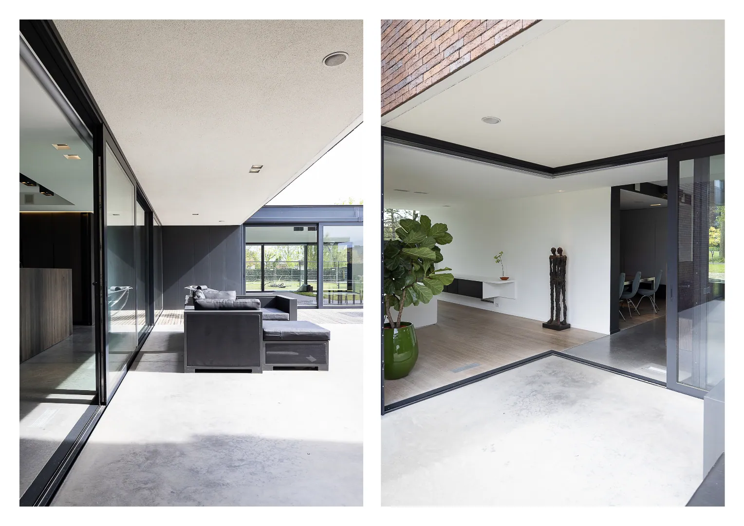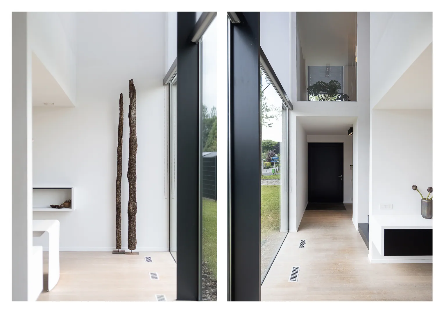 Binnenin worden lichtinval, open ruimte, wooncomfort en architecturale stijlelementen met veel gevoel gecombineerd.