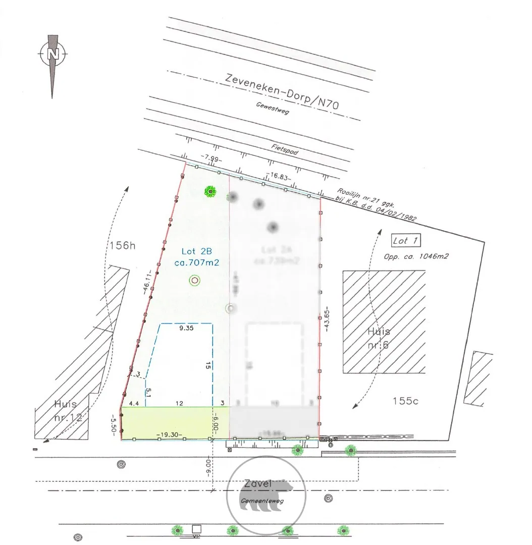 Bouwzone op 6m ten opzichte van de rooilijn ter hoogte van Zavel.