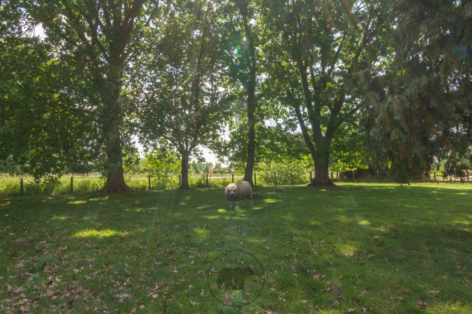 Achterin het perceel staan meerdere hoge bomen met onder andere een 45 jaar oude Amerikaanse Eik.