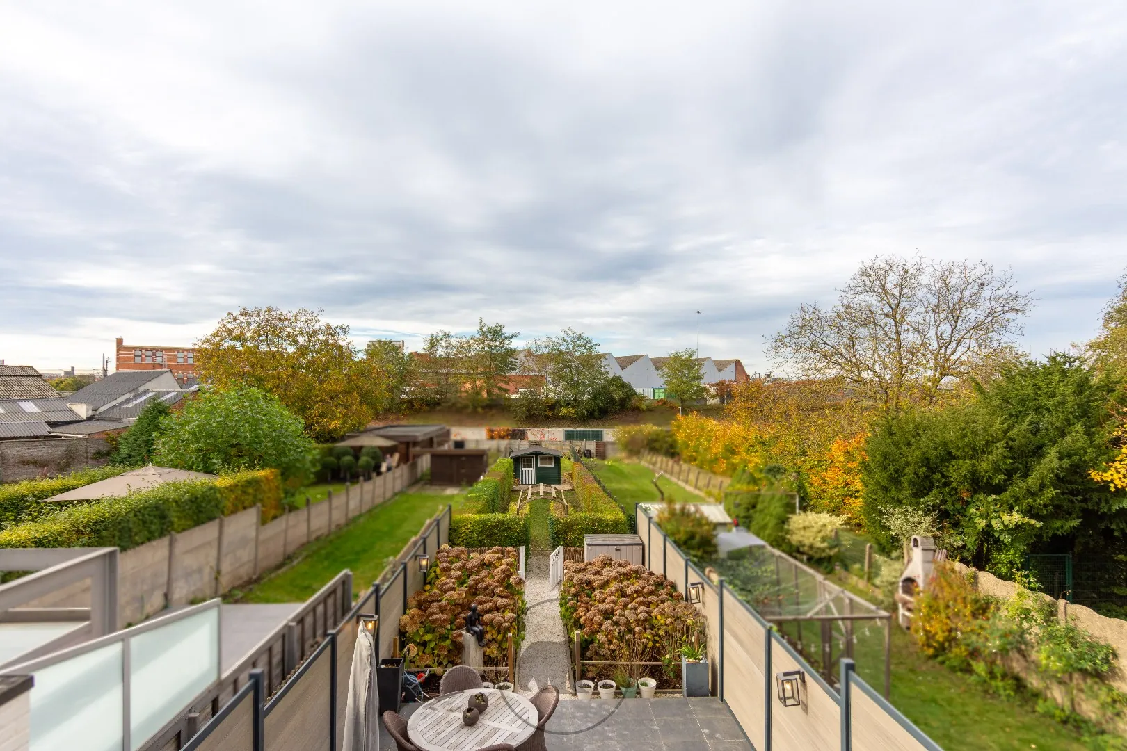 De eerste verdieping omvat een ruime slaapkamer die uitkijkt op het dakterras en de achterliggende tuin. De aangrenzende dressing en een stijlvolle badkamer combineren comfort met hoogwaardige materialen – een duidelijke weerspiegeling van de zorg waarmee dit huis werd afgewerkt.