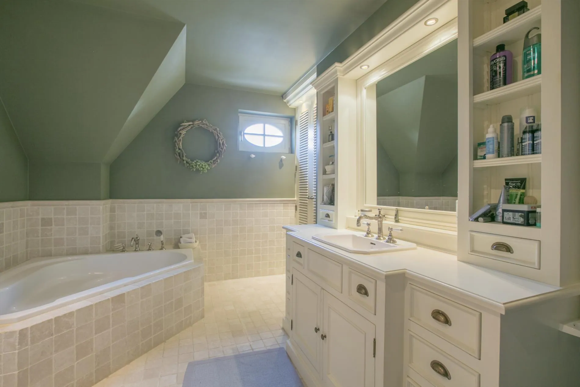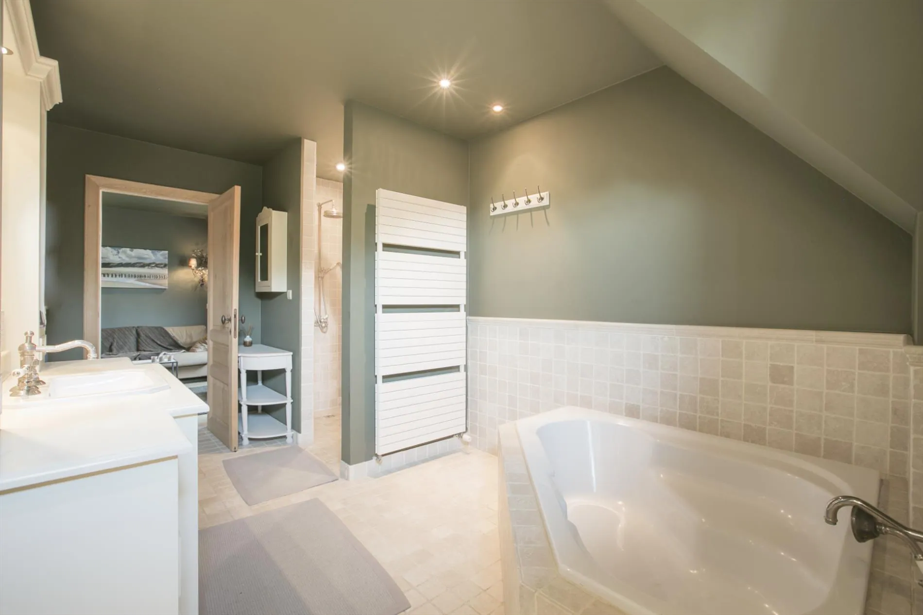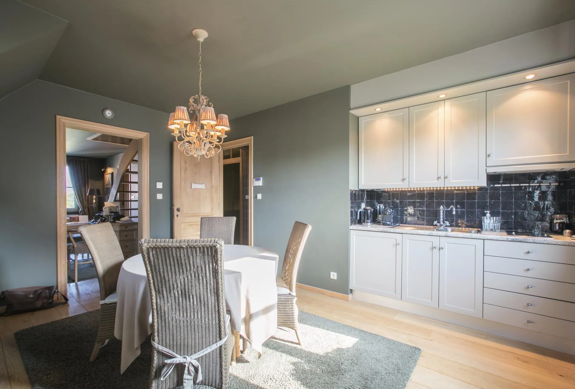 Op de bovenverdieping zijn er 4 ruime slaapkamers, een centrale 5e kamer geschikt als bureel of dressing en een badkamer van topkwaliteit met inbouwkasten, inloopdouche en ligbad.