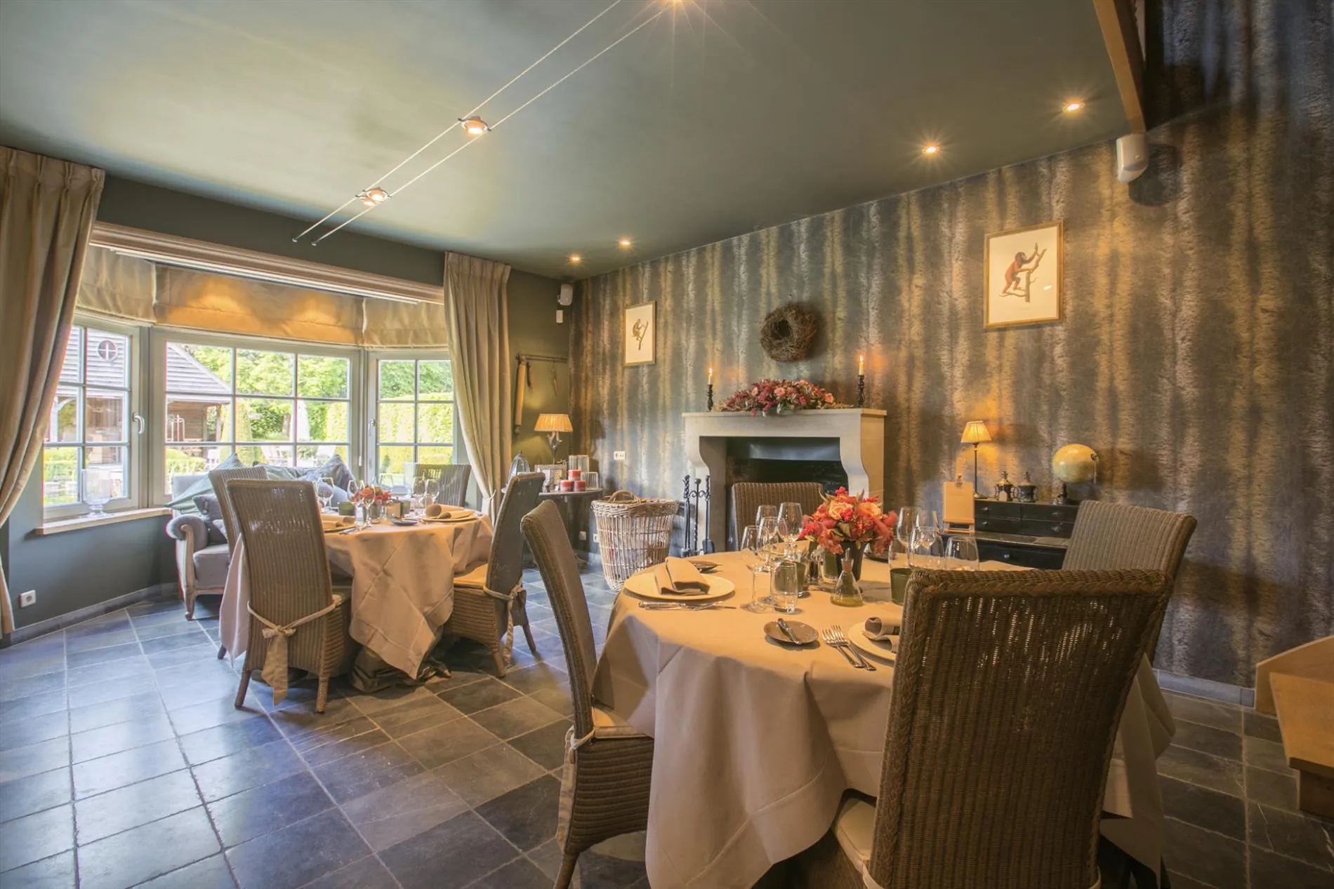 Het gelijkvloers met vloerverwarming biedt ruimte aan een salon, living met open haard en een ruime orangerie gebruikt als eetplaats met uitzicht op de aangelegde tuin. Een hypergeïnstalleerde open keuken sluit tenslotte aan op de koele berging en de mudroom. Meerdere kamers zijn voorzien van ingebouwde luidsprekers en worden aangestuurd dmv een Sonos-systeem.