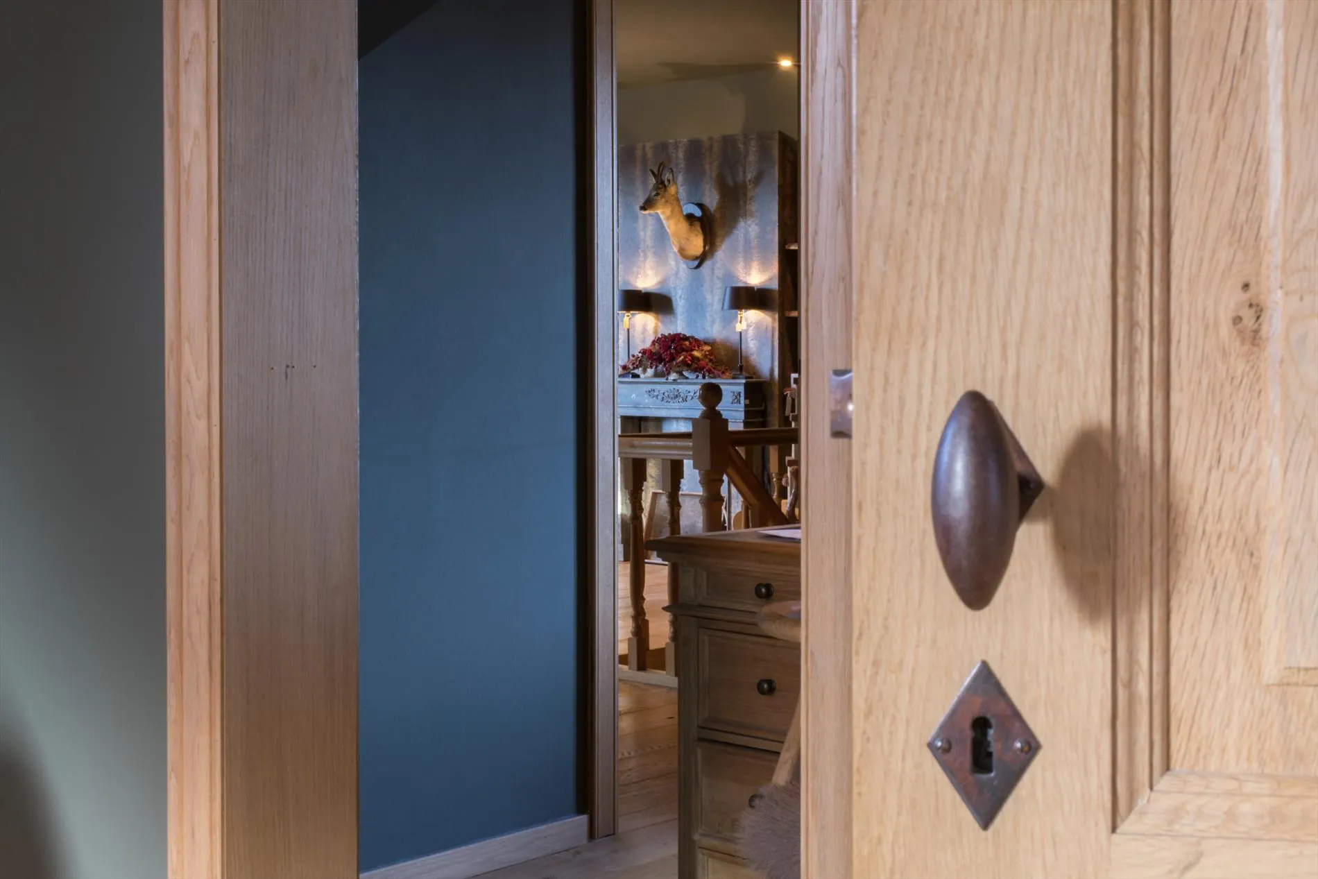 Zowel gelijkvloers als verdieping zijn uitgerust met natuursteen- of massieve parketvloeren en massieve eiken binnendeuren. Er zijn maar liefst twee trappen naar de bovenverdieping wat een meerwaarde biedt naar praktisch leefcomfort.