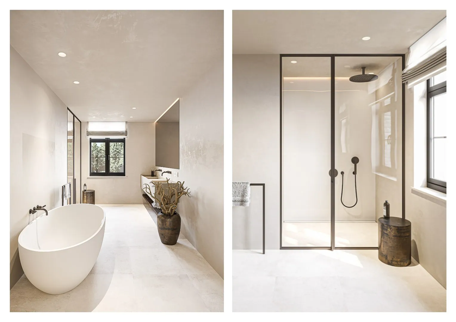 De architectuur combineert landelijke zachtheid met hedendaagse lijnen. Natuurlijke materialen, grote raampartijen en een harmonisch kleurgebruik laten de villa’s opgaan in hun omgeving. Binnen staat licht centraal en vloeien leefruimtes moeiteloos samen met de tuin, wat zorgt voor een serene en verfijnde sfeer. De afwerking is duurzaam, subtiel en luxueus. Prachtige parketvloeren, maatkeukens in fineerhout, eindafwerking naar wens van de klant.