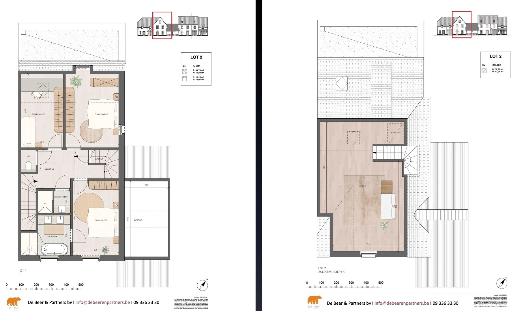 afwerkingsbudget of verder uit te breiden. Elke woning beschikt over 3 slaapkamers, 2 badkamers en
