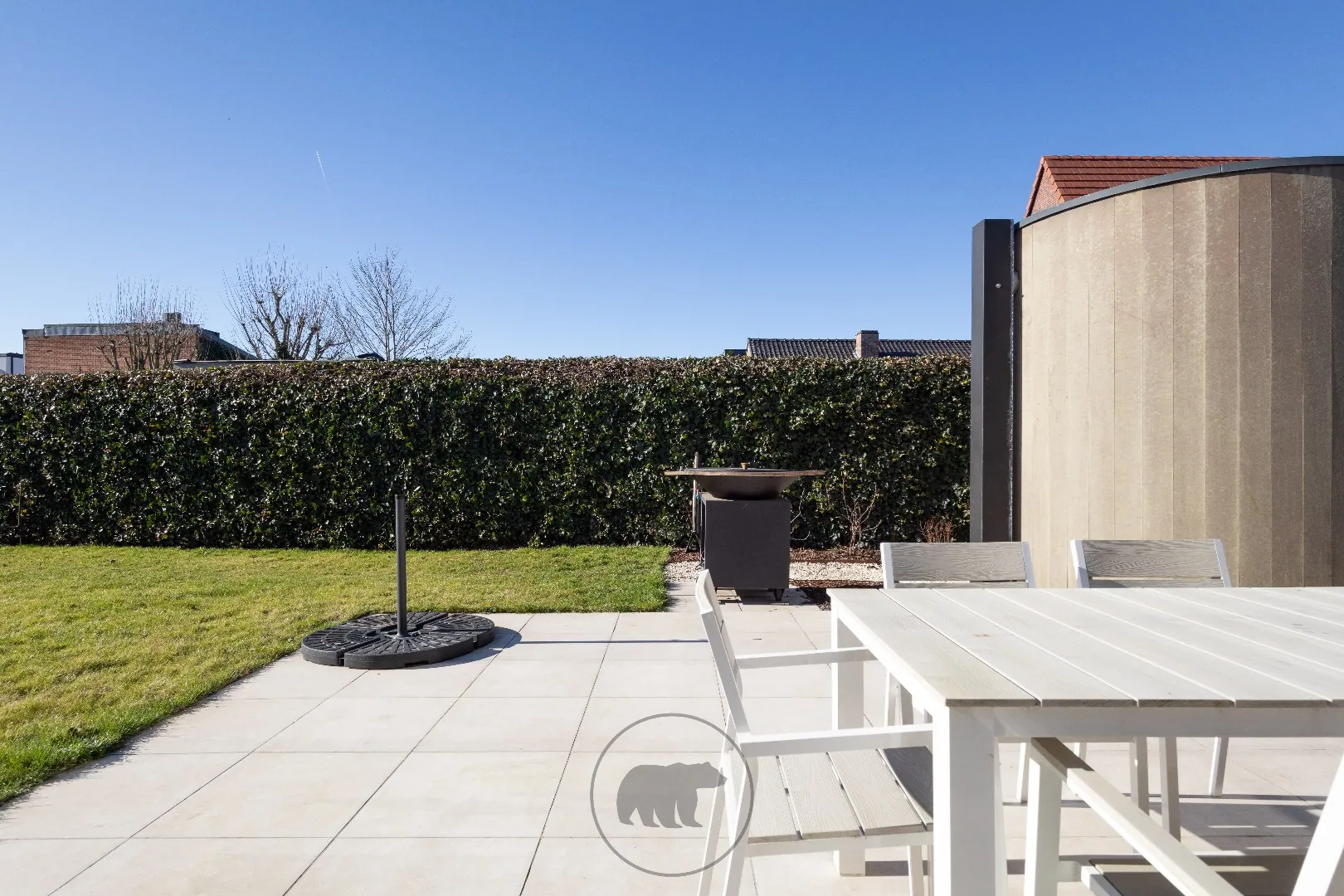 De woning heeft een subliem georiënteerde tuin met achterin 4 garageboxen.