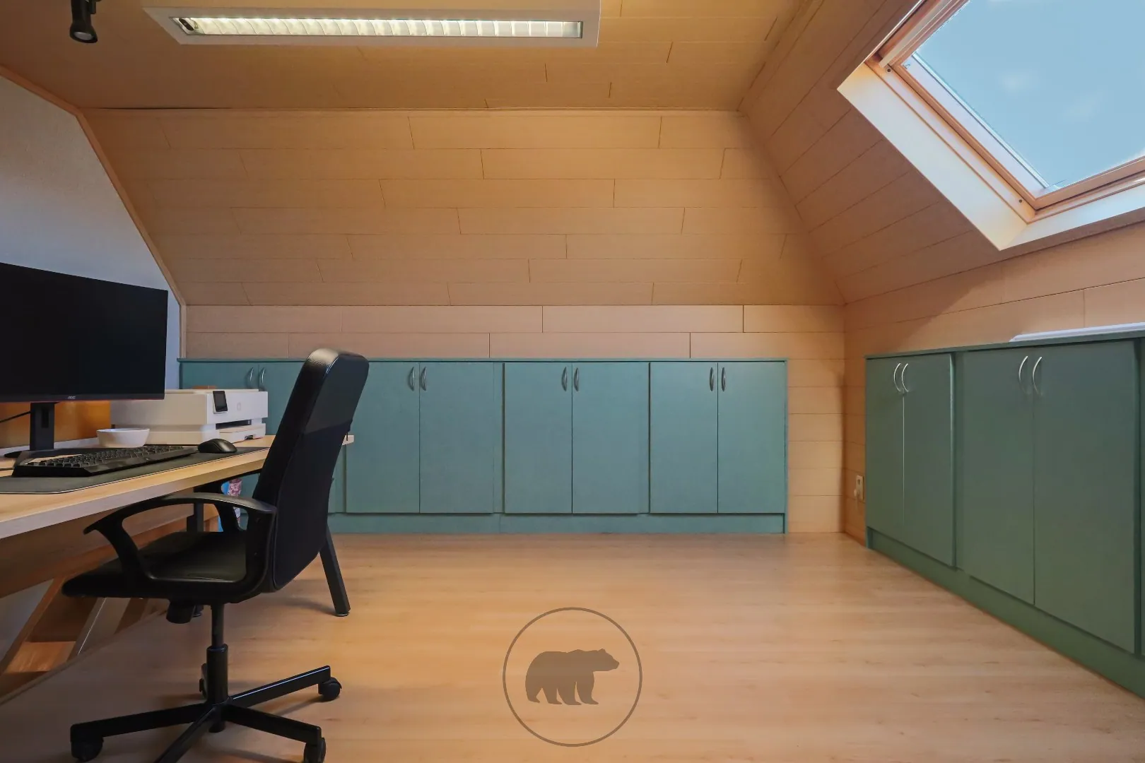Op de tweede verdieping is er een 4e slaapkamer met inbouwkasten, momenteel ingericht als bureel.