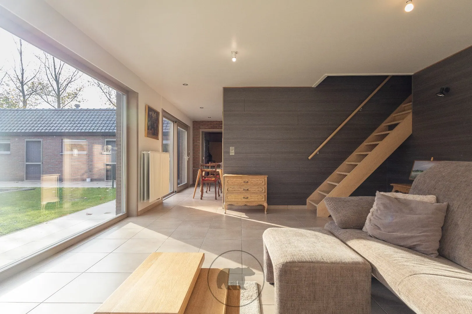 De recente aanbouw omvat een lichtrijke leefruimte met prachtig zicht op de tuin, ideaal voor wie openheid en rust waardeert. De originele leefruimte en keuken bieden een warm, landelijk karakter.